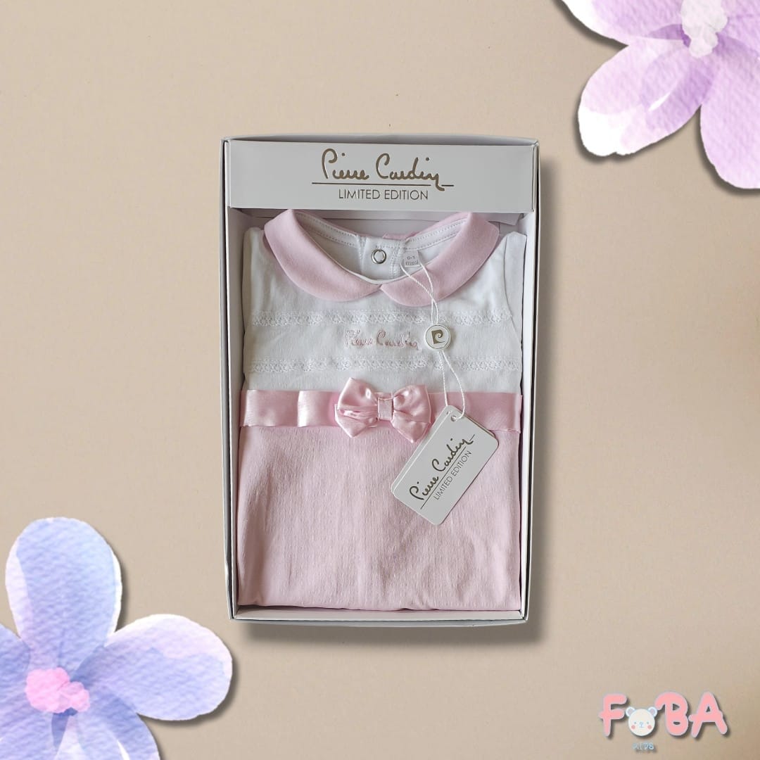 Questa deliziosa tutina Pierre Cardin è realizzata in morbido 100% cotone, ideale per la pelle delicata dei neonati. Dotata di un’apertura comoda sulla schiena e nell’interno coscia, garantisce praticità durante il cambio. La decorazione comprende una fascia e un fiocco centrale, arricchiti da un raffinato ricamo del logo Pierre Cardin, che dona un tocco di eleganza. Disponibile nella taglia 0-1 mese, è perfetta per coccolare il tuo bebé con stile e comfort.