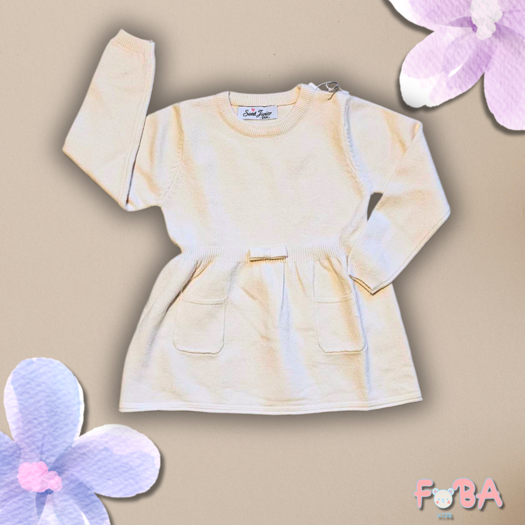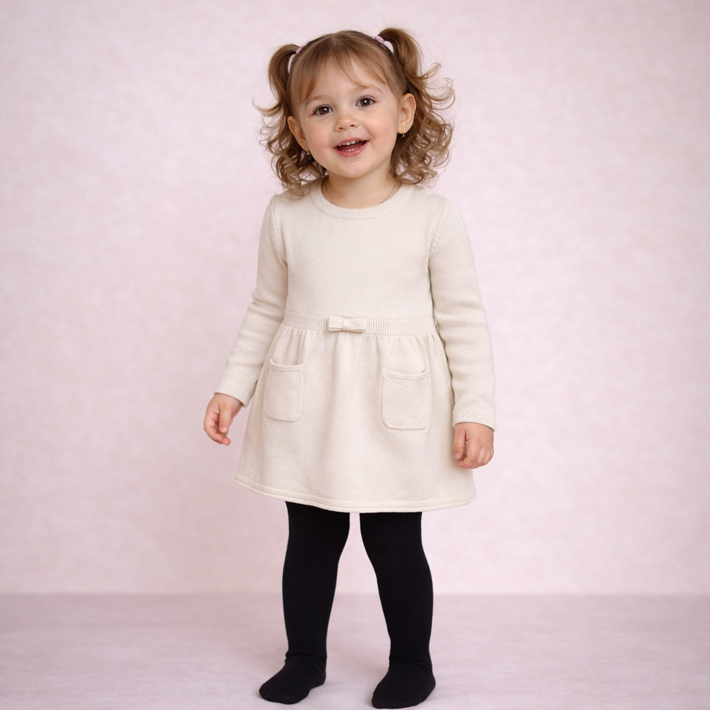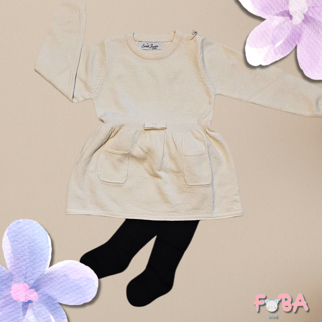 Delizioso abito bimba in lanettina con collant coordinati. Morbido, caldo e confortevole, perfetto per look eleganti e pratici nelle stagioni fredde. Taglia abito 24 mesi, collant 18/24.
