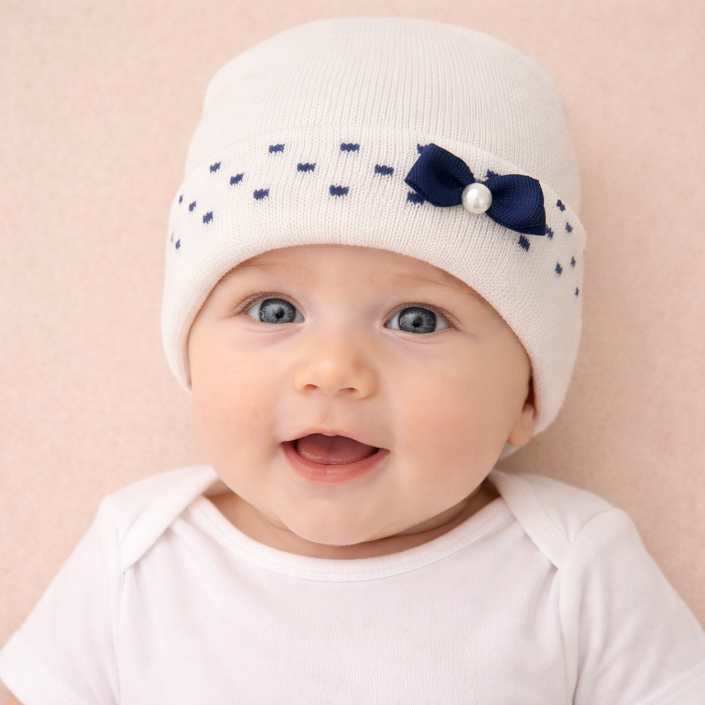 Regala al tuo piccolo un tocco di dolce eleganza con questo adorabile cappellino neonato in morbido cotone. Realizzato con materiali di alta qualità, è perfetto per mantenere la testolina del tuo bebè al caldo e protetta, con stile e delicatezza.