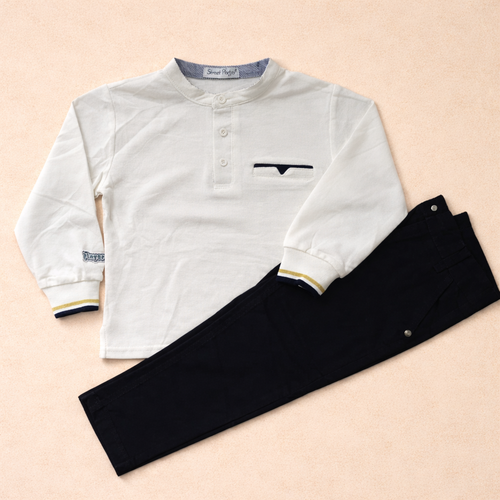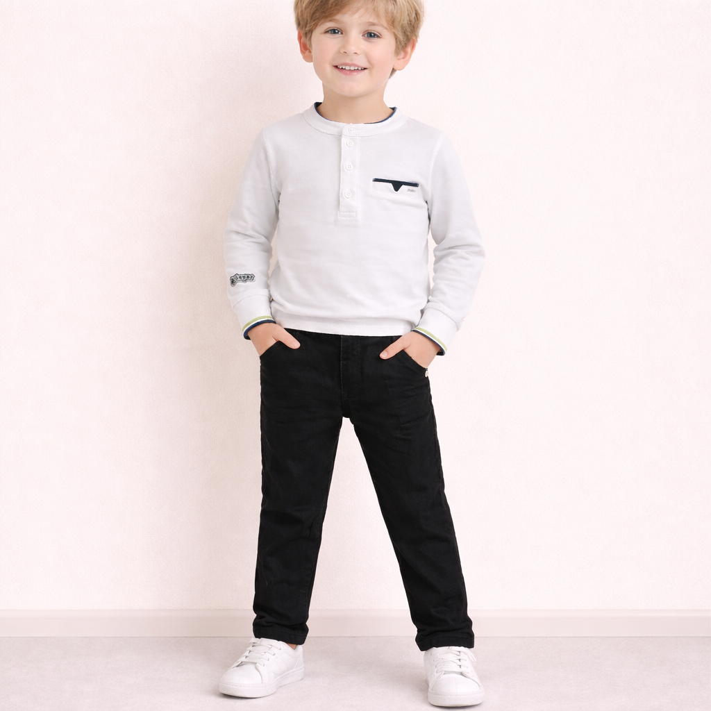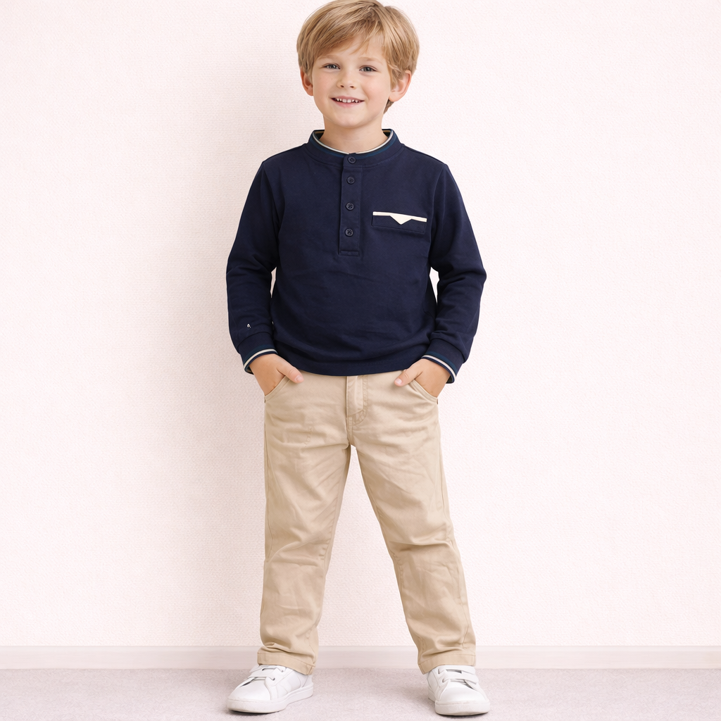 Scopri il nostro completo primaverile per bambino, perfetto per le giornate di sole e per un abbigliamento casual. Questo set è composto da una T-shirt a maniche lunghe, realizzata in un morbido tessuto che garantisce comfort e libertà di movimento, e da pantaloni coordinati che completano il look. La combinazione di 85% cotone e 15% poliestere assicura una piacevole sensazione sulla pelle e una buona resistenza nel tempo. Perfetto per giocare all’aperto o per una passeggiata in famiglia, questo completo è un must-have nel guardaroba di ogni bambino. Scegli la praticità e lo stile con questo adorabile set primaverile!