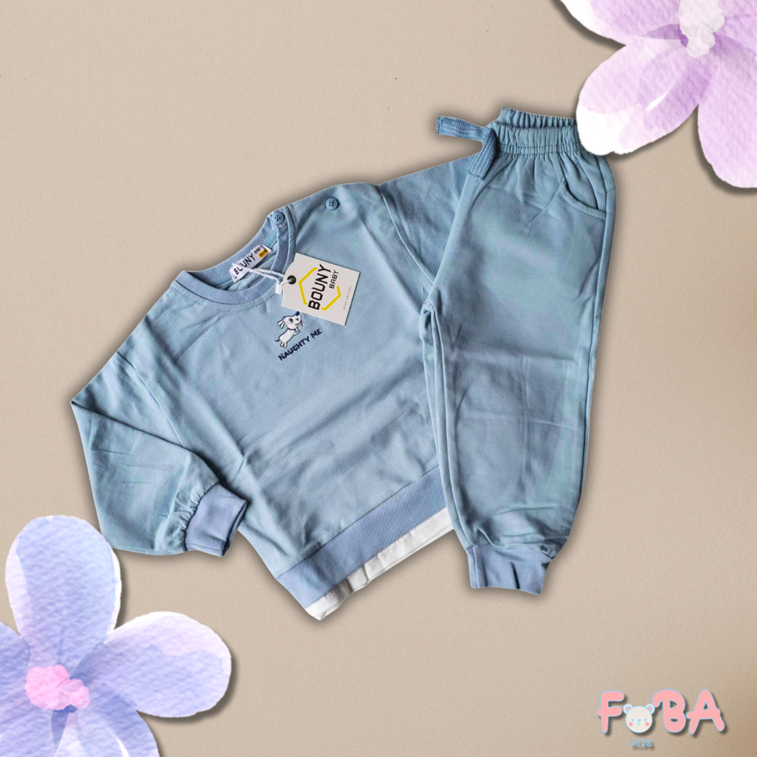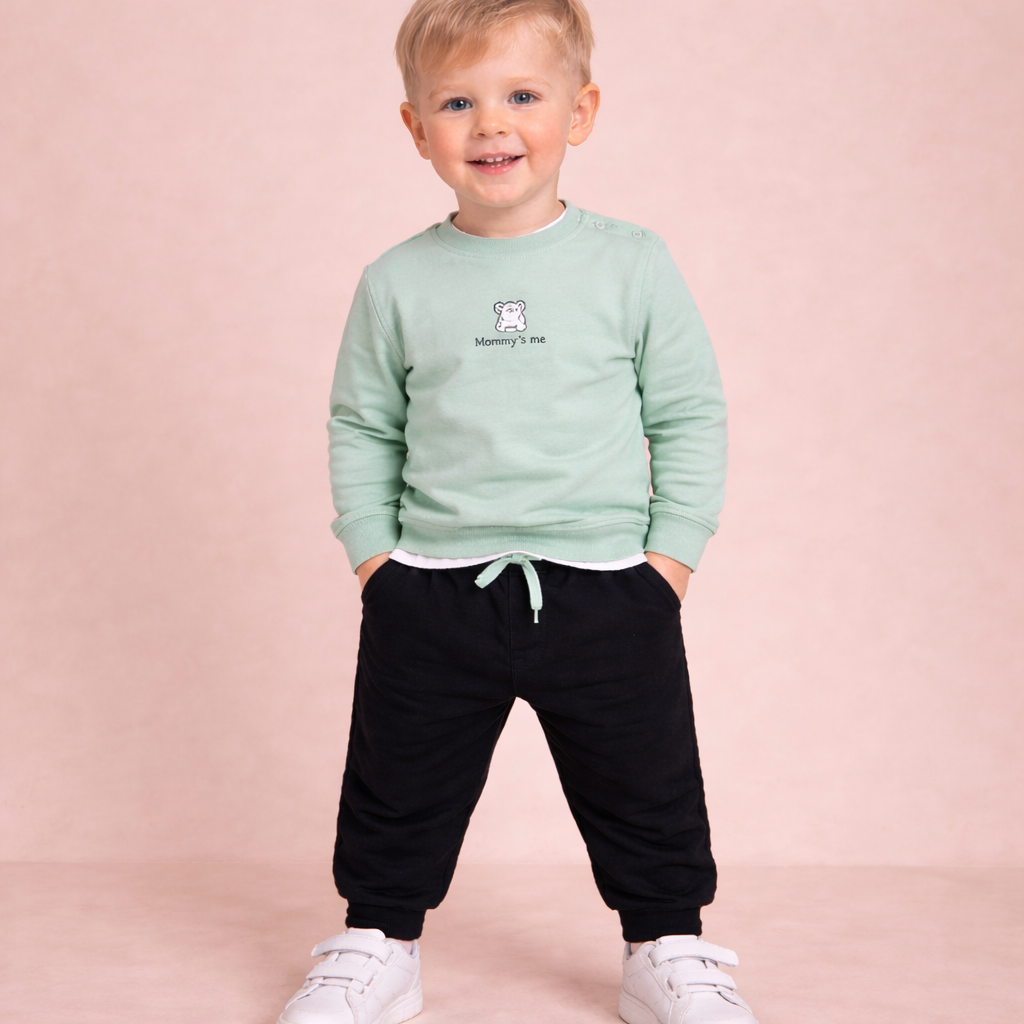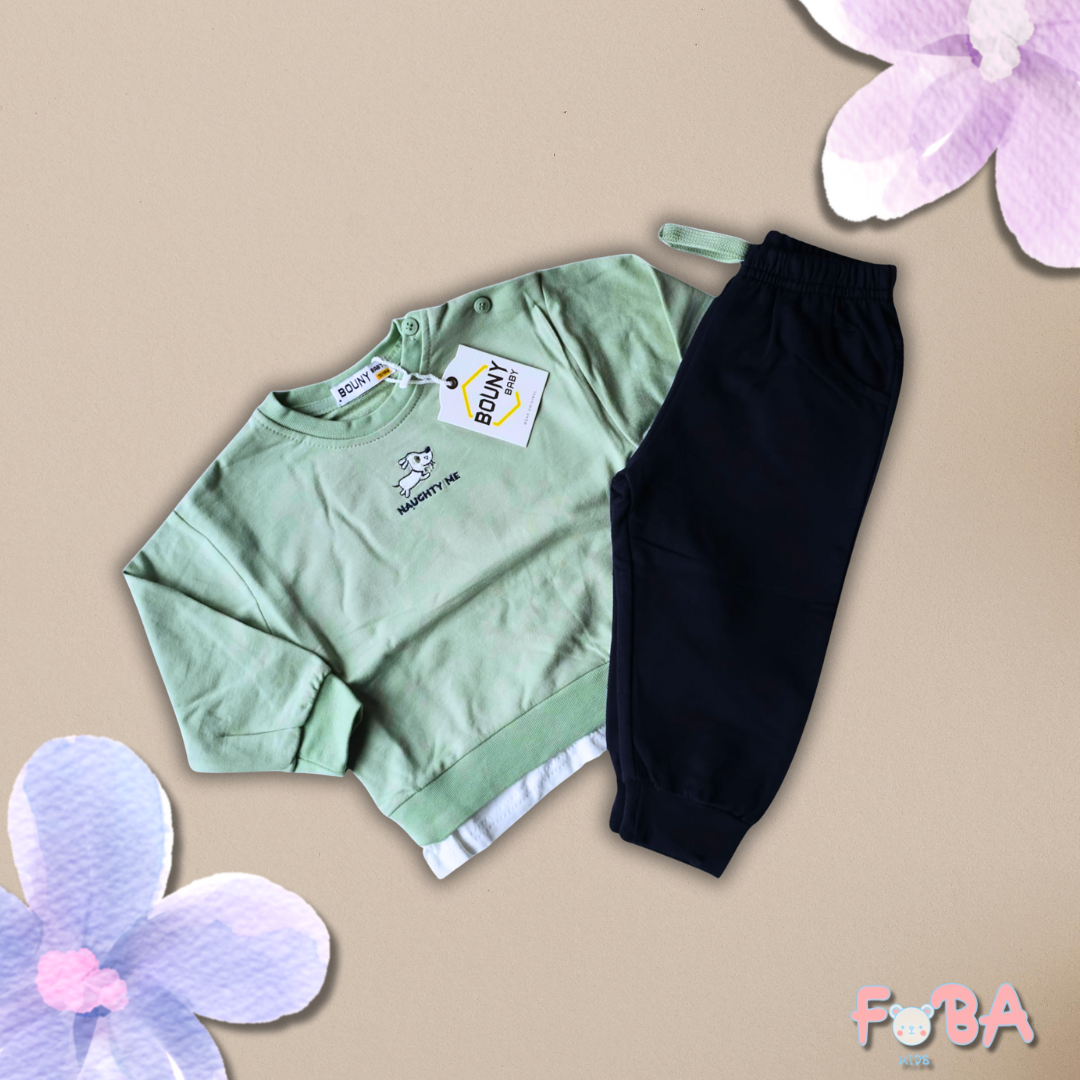 Il set include una felpa morbida e traspirante, studiata per offrire il giusto comfort senza appesantire, e pantaloni tipo tuta che garantiscono una vestibilità pratica e piacevole.