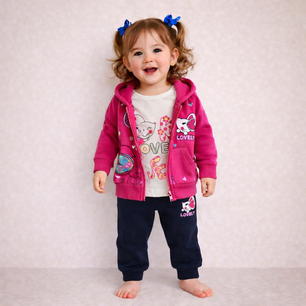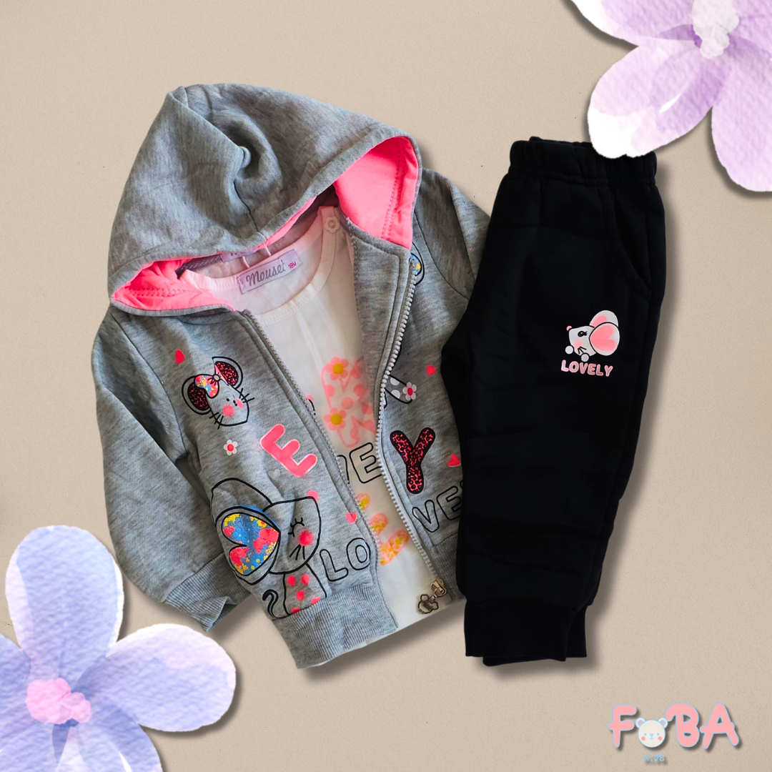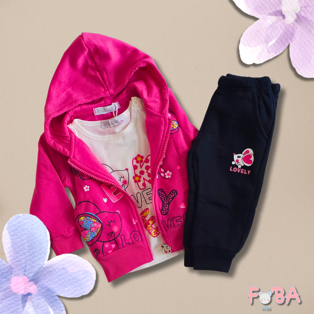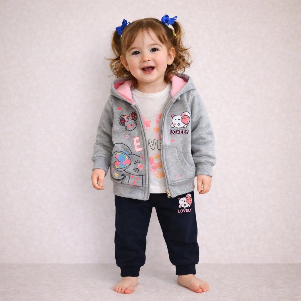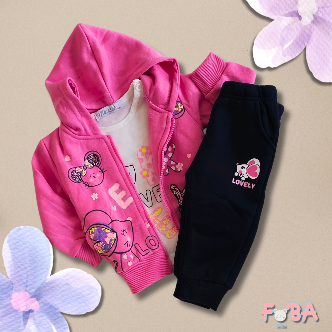Un set completo da 3 pezzi per neonata, perfetto per affrontare i mesi più freddi con stile e comfort.