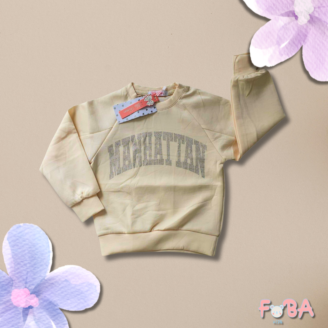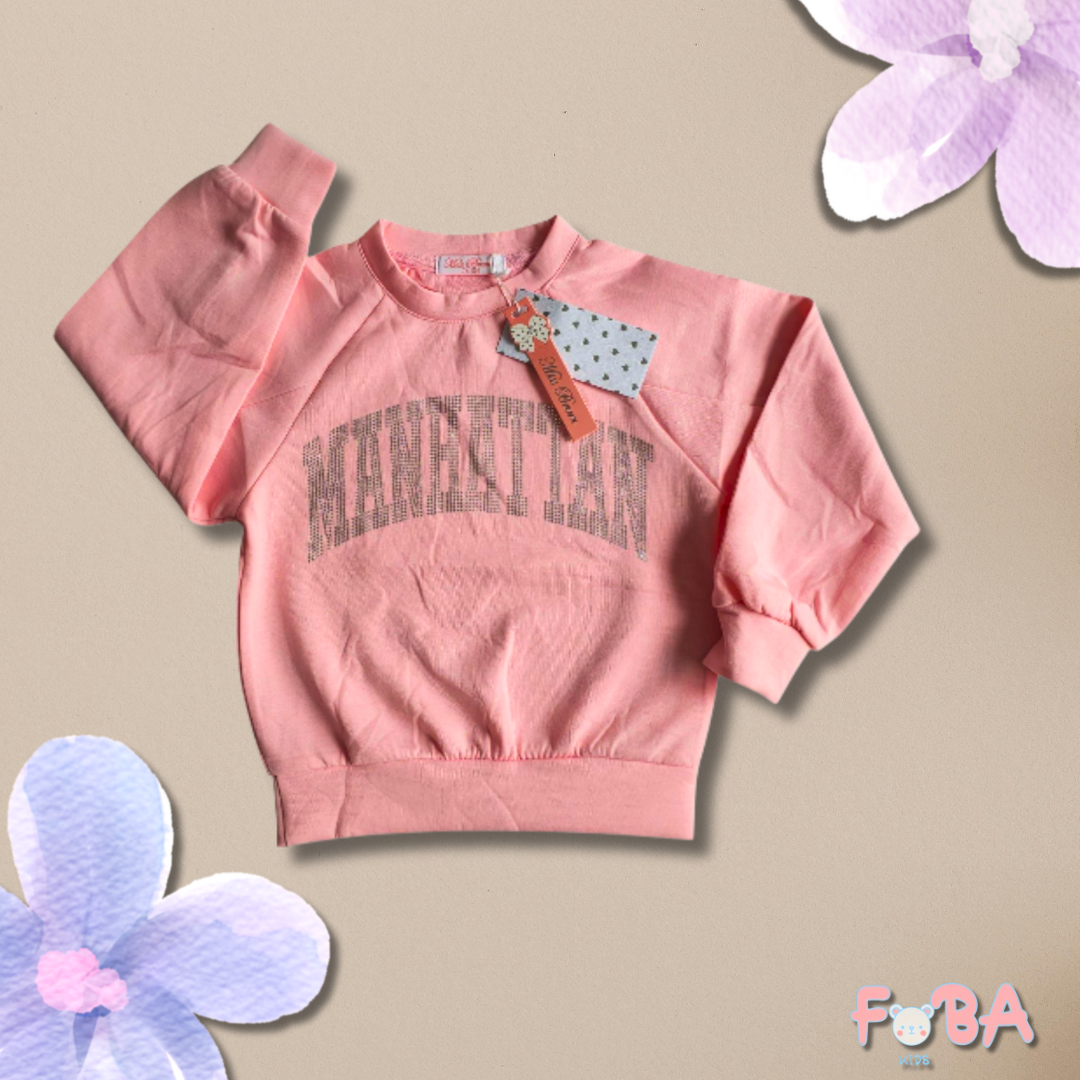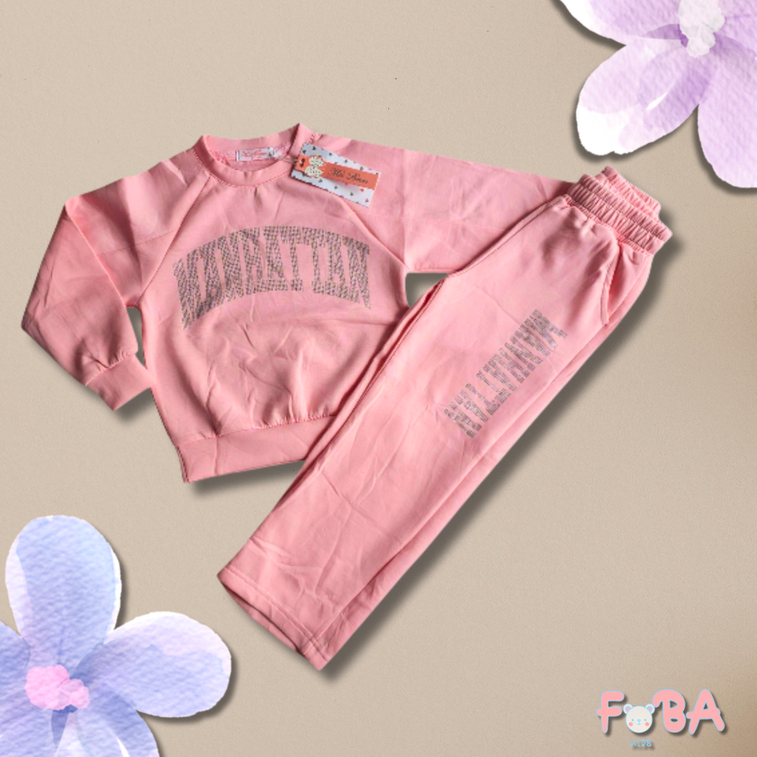 Composta da una felpa morbida e da un pantalone ampio con elastico in vita, questa tuta è perfetta per accompagnare le piccole in ogni momento della giornata — dal gioco al relax.
