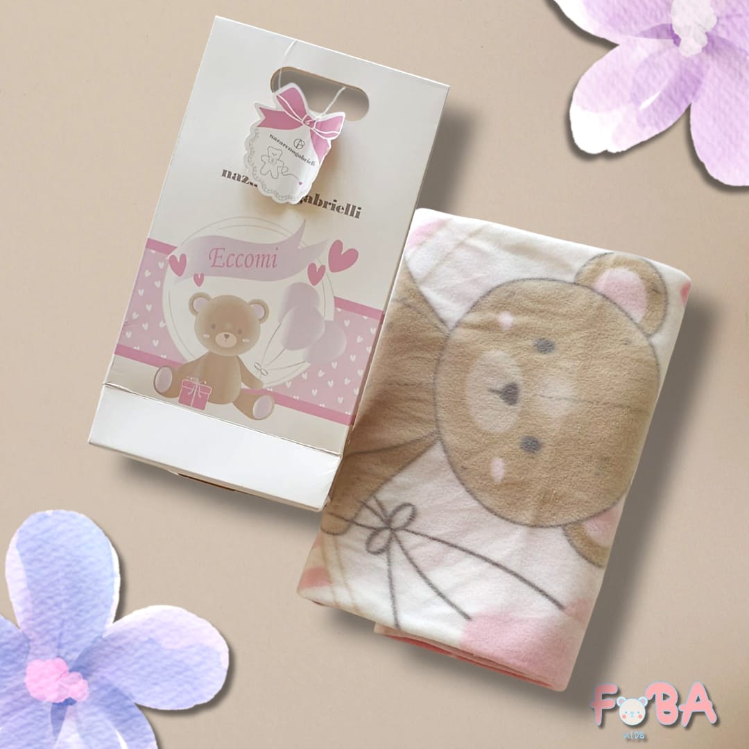 Scopri la graziosa confezione regalo che include una copertina adorabile, perfetta per i più piccoli. Realizzata in poliestere al 100%, questa copertina è morbida e resistente, garantendo comfort e calore. La copertina presenta una dolce stampa di un orsetto accompagnata dalla scritta “eccomi”, rendendola un regalo ideale per neonati o come articolo da aggiungere alla nursery.