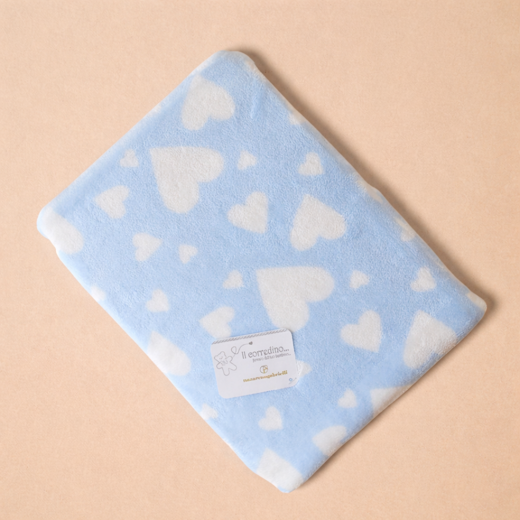 La fantasia a cuori dona un tocco di dolcezza e allegria, rendendo questa copertina non solo pratica ma anche adorabile come elemento decorativo della cameretta.