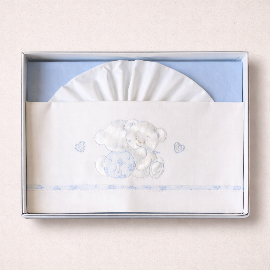 Composto da 3 pezzi essenziali — lenzuolo sopra, lenzuolo sotto e federa — si adatta perfettamente a culla e side-sleeping grazie alle dimensioni 95×135 cm.