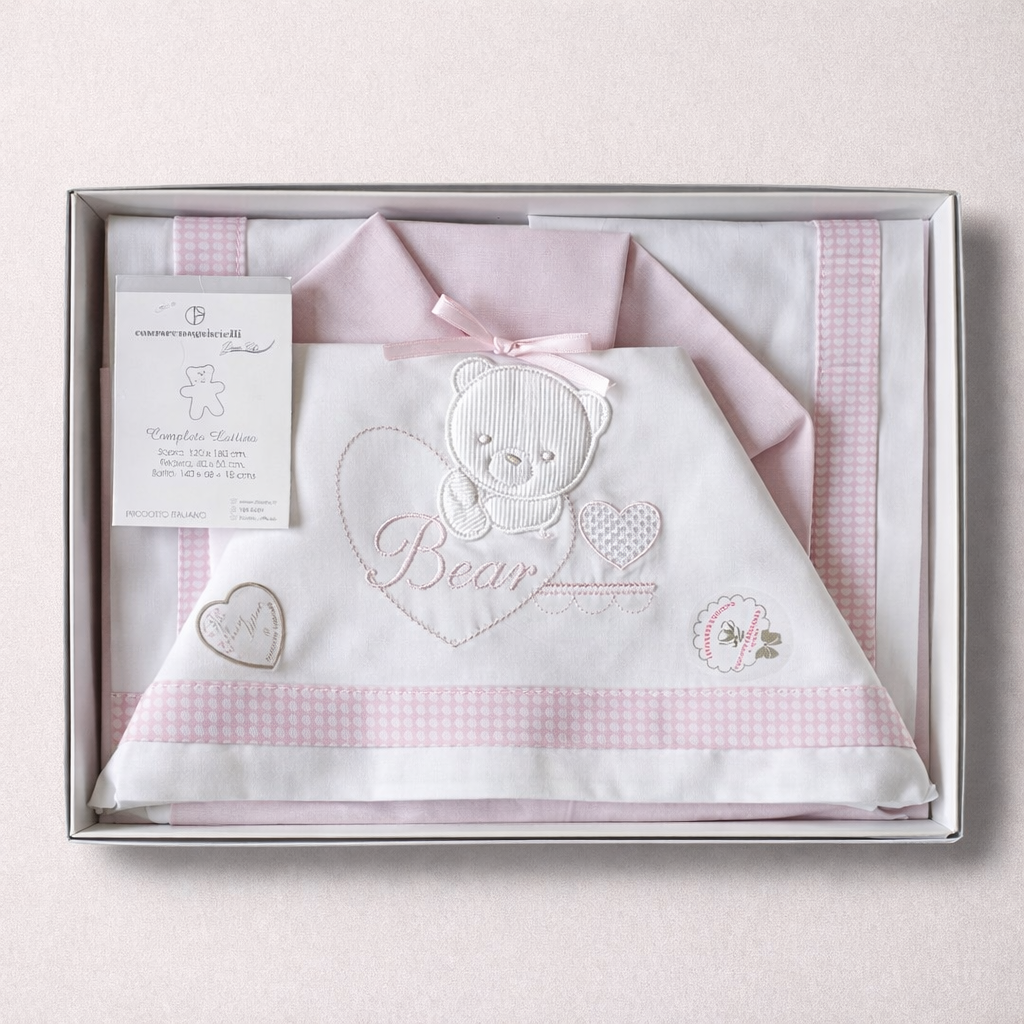 Le colorazioni disponibili includono rosa, azzurro e neutro, permettendoti di scegliere quella più adatta ai gusti del tuo piccolo o al tema della stanza. Scegli il set lenzuola Nazareno Gabrielli per un tocco di stile e comfort nella routine di sonno del tuo bambino!