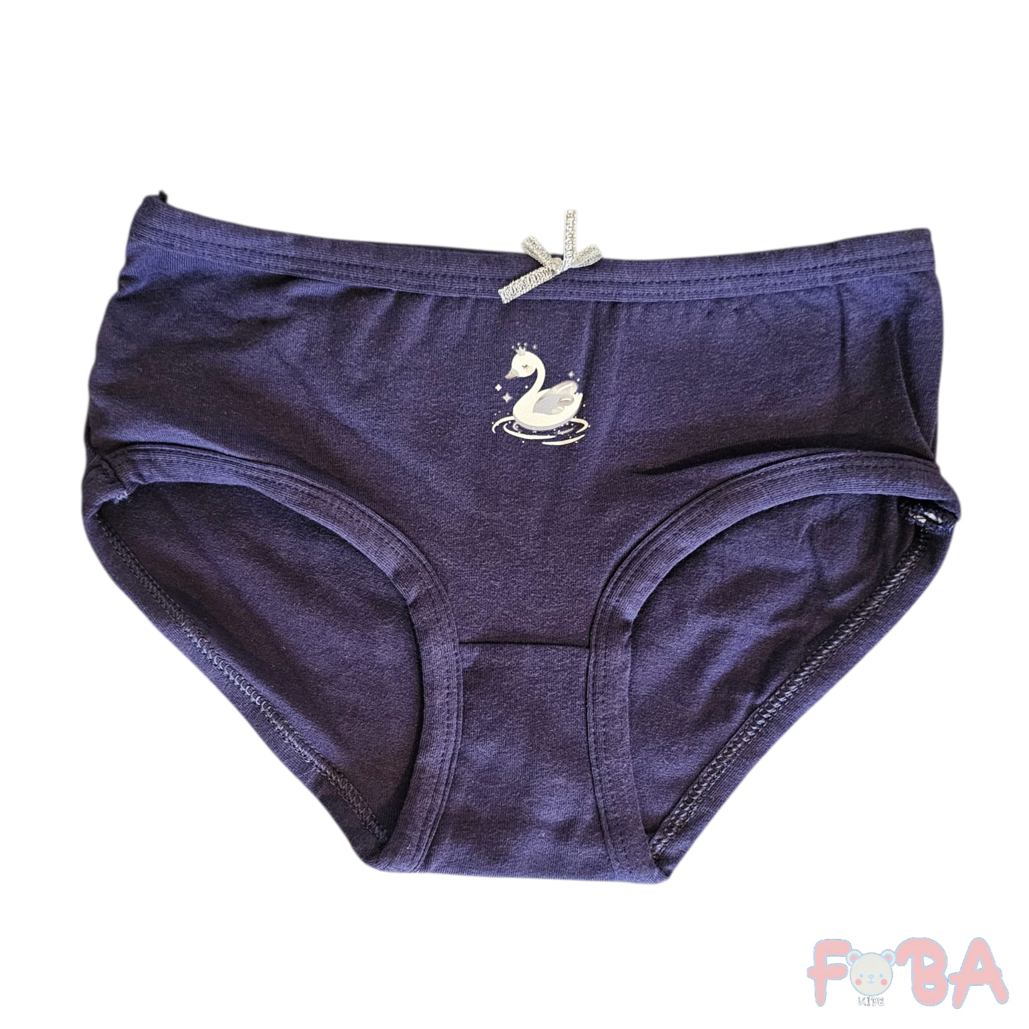 Questo elegante slip da bambina in cotone blu scuro unisce comodità e stile in un design raffinato. Al centro della vita è presente un grazioso fiocchetto glitterato color argento che aggiunge un tocco brillante e femminile. La stampa frontale raffigura un tenero cigno bianco che galleggia sull’acqua, circondato da stelline, evocando un’atmosfera dolce e sognante. Realizzato con materiali morbidi e traspiranti, è perfetto per l’uso quotidiano, garantendo comfort e libertà nei movimenti per tutta la giornata.