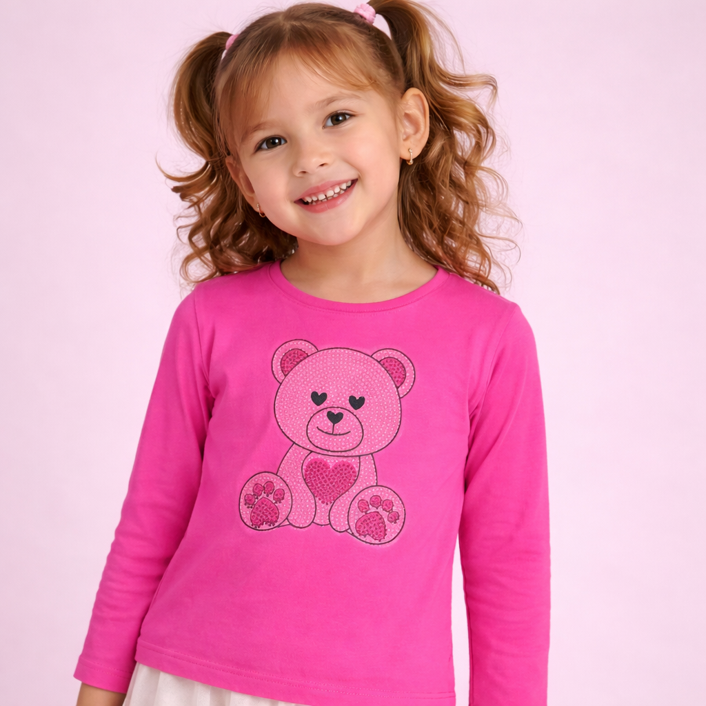 Scopri la nostra T-shirt a manica lunga per bambina, pensata per aggiungere un tocco di dolcezza e luminosità a ogni outfit.