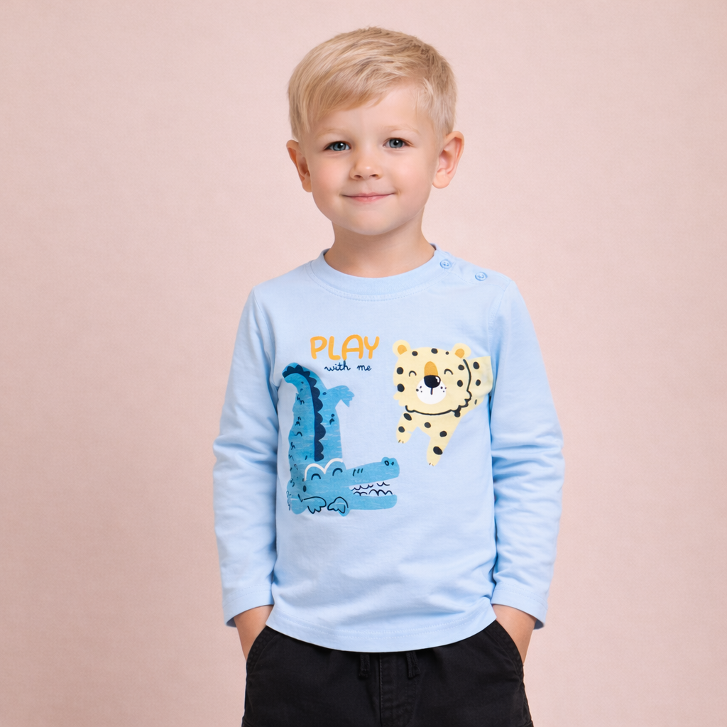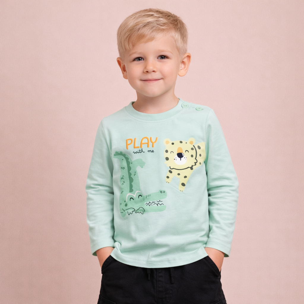 Leggera ma ideale per le stagioni più fresche, questa T-shirt diventerà subito un elemento indispensabile nel guardaroba del tuo piccolo. Scegli praticità, qualità e dolcezza in un’unica soluzione!