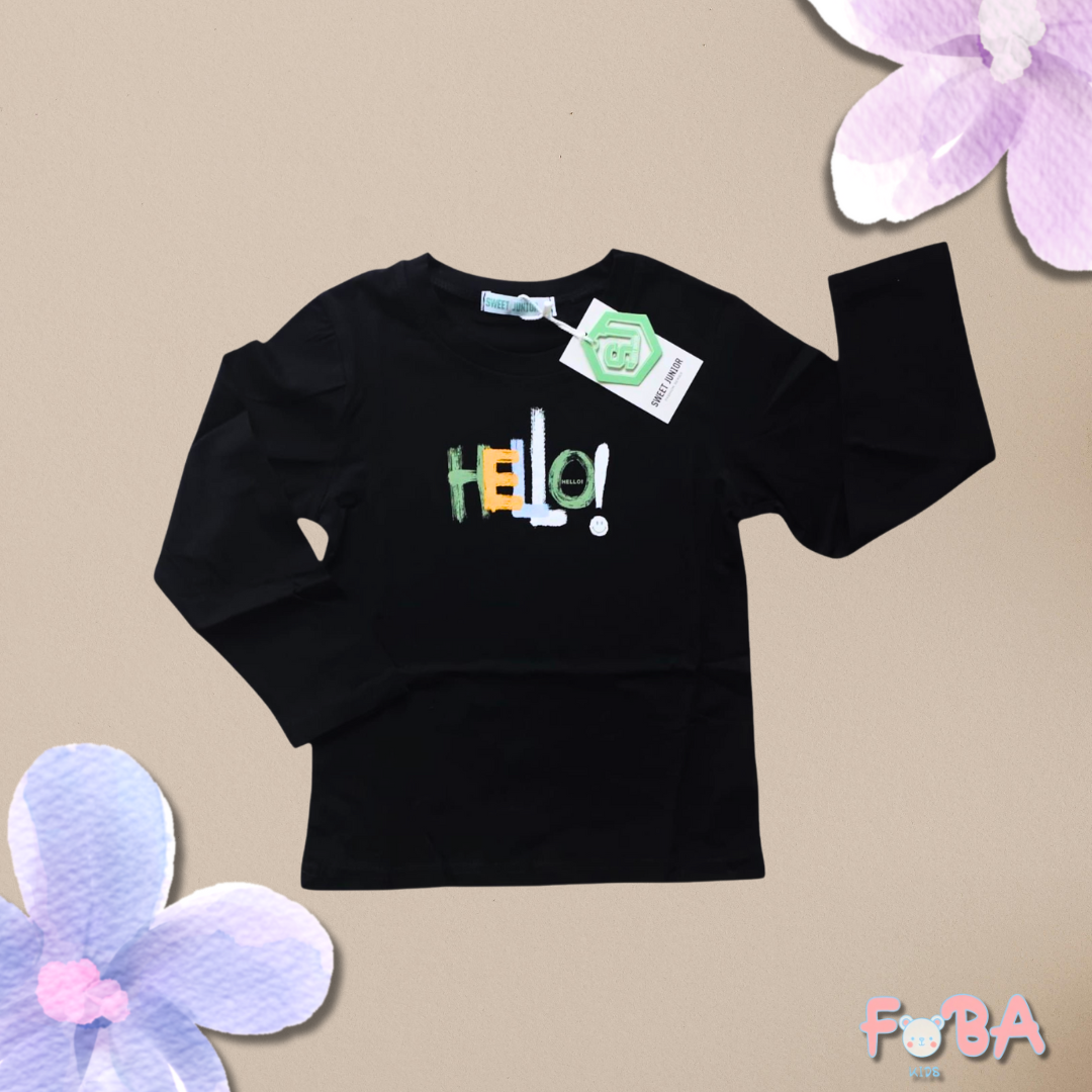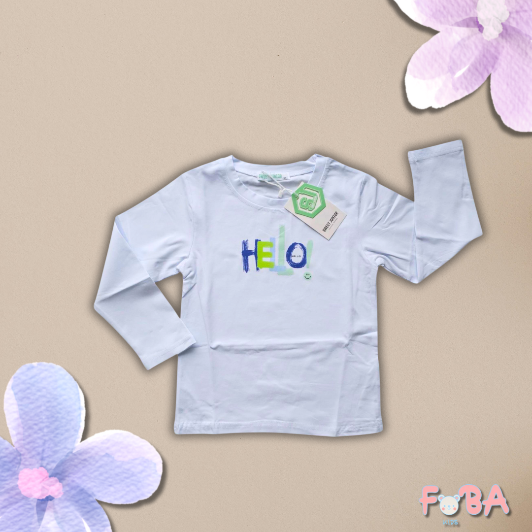 T-shirt manica lunga con stampa “hello” davanti e retro
