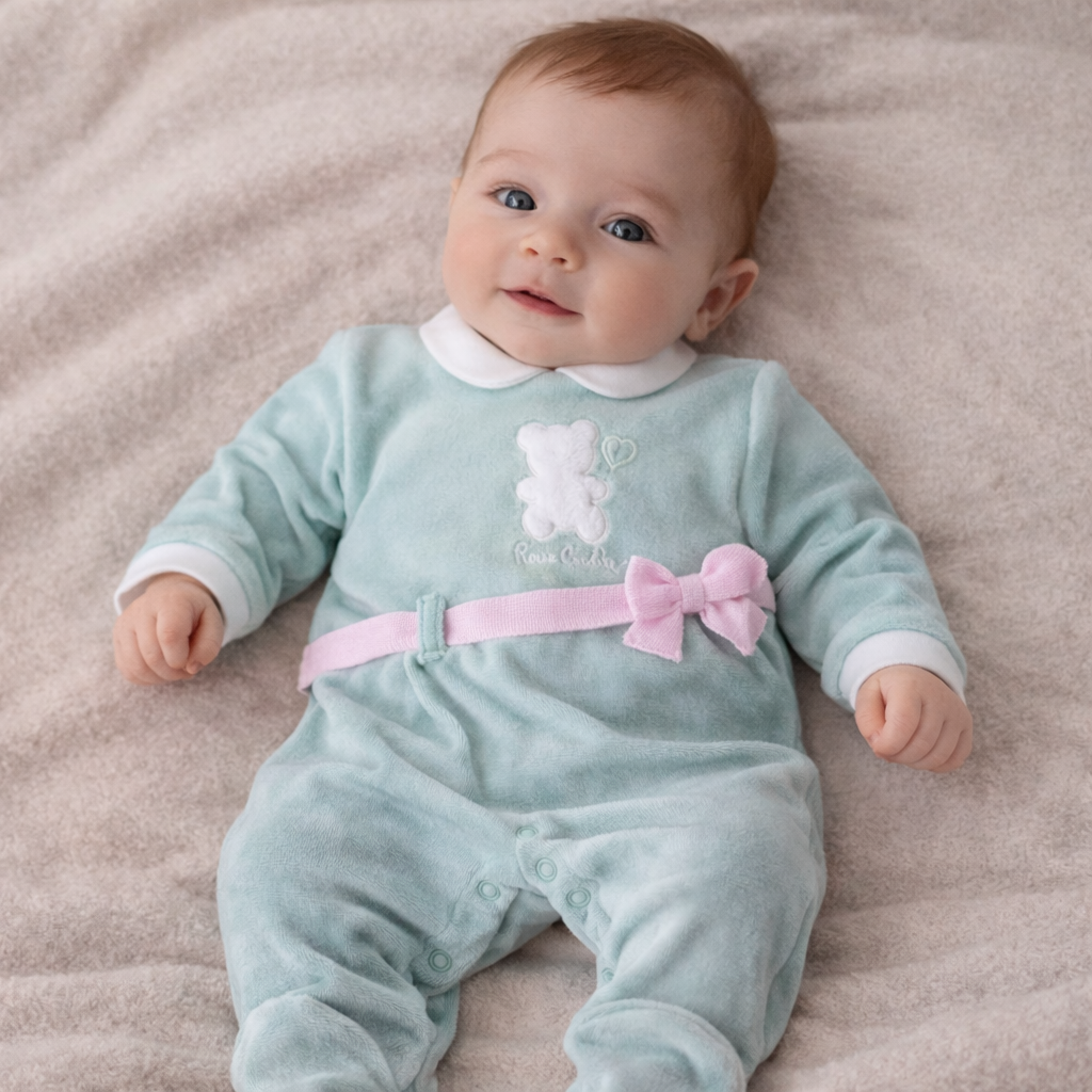 Una tutina dolce e raffinata, perfetta per avvolgere la tua piccola principessa in un caldo abbraccio.